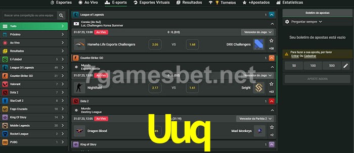O Uuq oferece uma grande seleção de opções de apostas em e-sports com probabilidades competitivas
